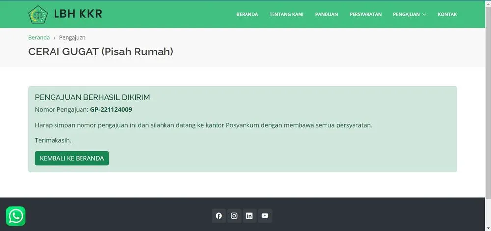 Jika proses pengiriman formulir pengajuan berhasil, maka anda akan mendapatkan NOMOR PENGAJUAN seperti berikut: