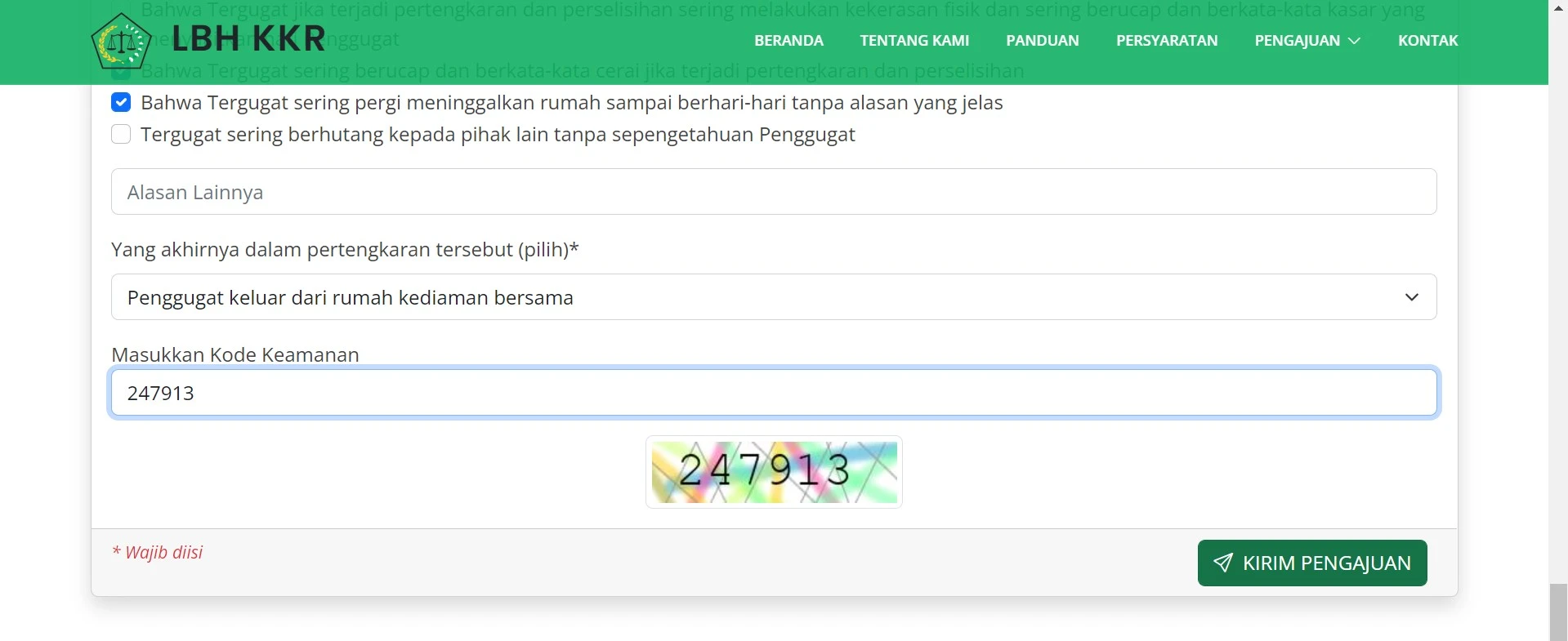 Klik pada tombol KIRIM PENGAJUAN jika sudah mengisi formulir. Pastikan data sudah diisi dengan benar.